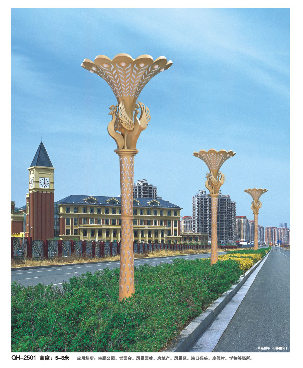 用途:景觀燈適用市政工程、園林亮化工程和公園、開(kāi)發(fā)區(qū)、別墅區(qū)、廣場(chǎng)等戶外路燈照明工程