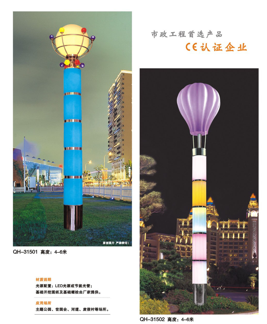 用途:景觀燈適用市政工程、園林亮化工程和公園、開發(fā)區(qū)、別墅區(qū)、廣場等戶外路燈照明工程