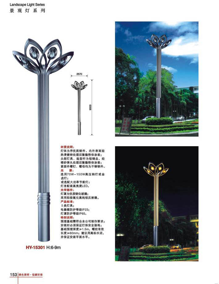 用途:景觀燈適用市政工程、園林亮化工程和公園、開(kāi)發(fā)區(qū)、別墅區(qū)、廣場(chǎng)等戶外路燈照明工程