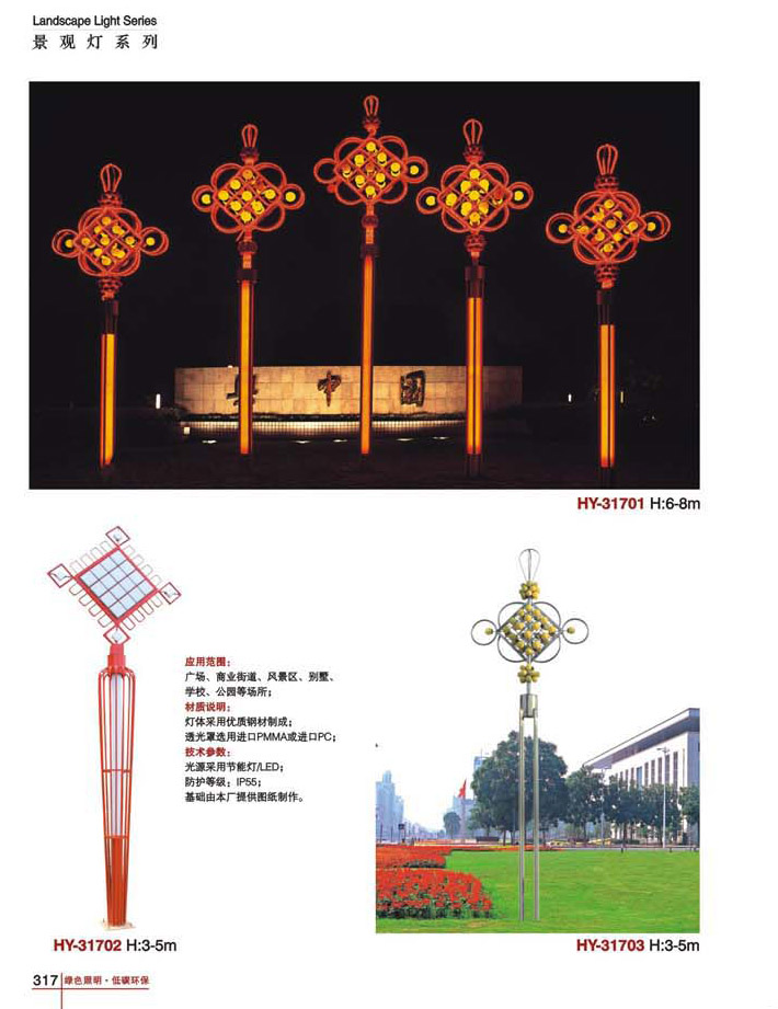 用途:景觀燈適用市政工程、園林亮化工程和公園、開發(fā)區(qū)、別墅區(qū)、廣場等戶外路燈照明工程