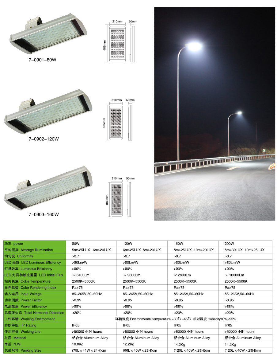 燈具參數(shù):80W、120W、160W