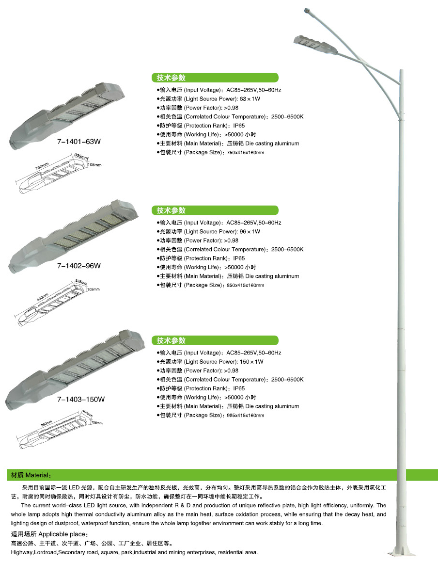 led路燈燈頭7-1401-63W 1402-96W 1403-150W